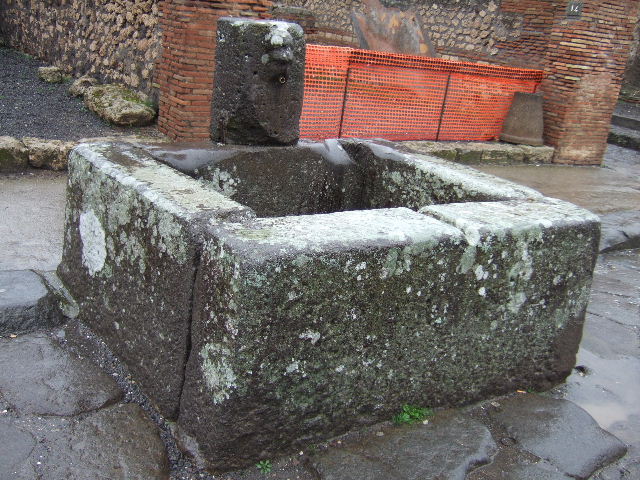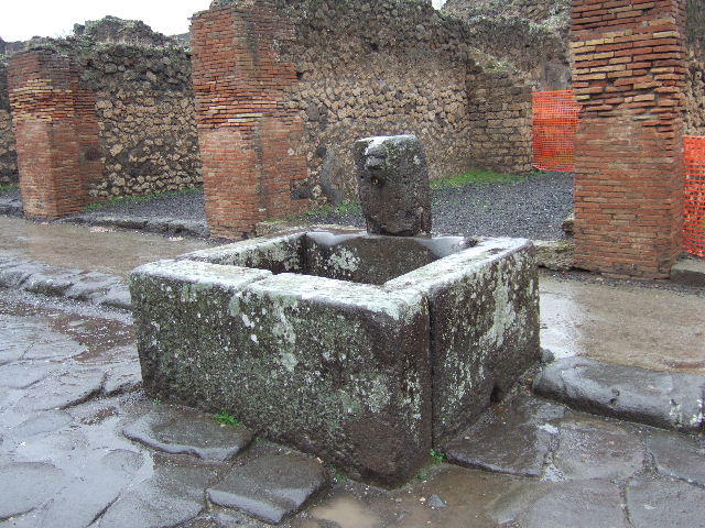 north towards fountain in front of VII.4.13 and VII.4.14 Pompeii. Photo