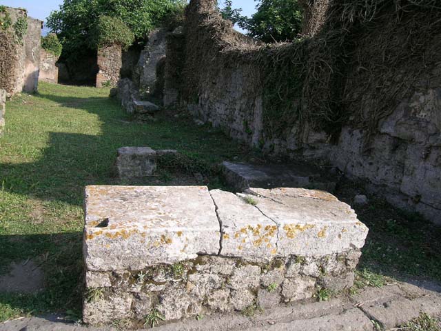 VII.3.13 Pompeii. December 2005. Wide shop entrance with marble podium.
