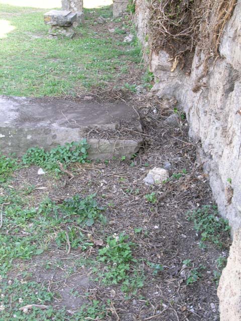 VII.3.13 Pompeii. March 2009. South-west corner of large triclinium. Looking towards remaining west wall of triclinium.
