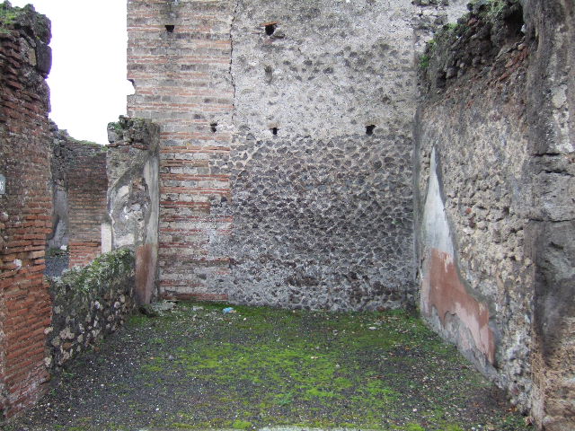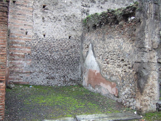 Looking across VII.9.27 towards west wall of shop-room, behind small wall. Photo courtesy of Nicolas Monteix.