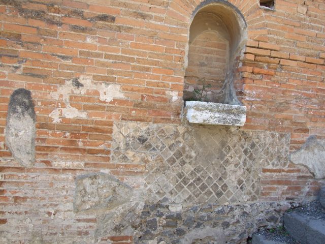 VII.9.42 Pompeii. March 2009. West wall with arched niche of street altar.