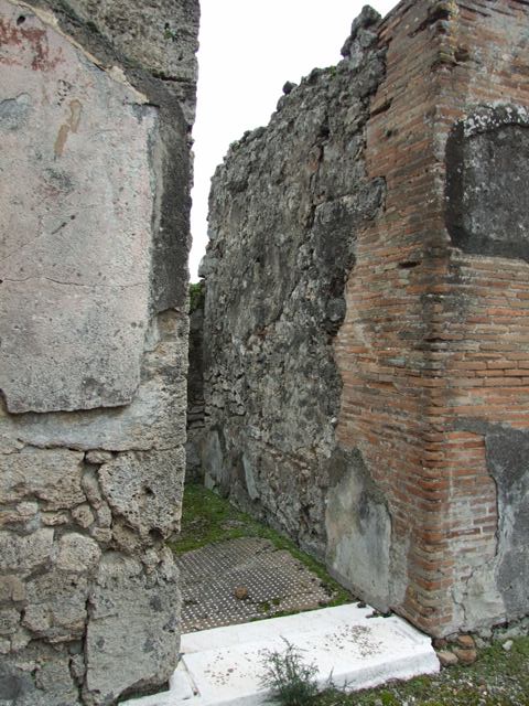 VII.9.47 Pompeii. March 2009. Room 2, cubiculum door sill and flooring.