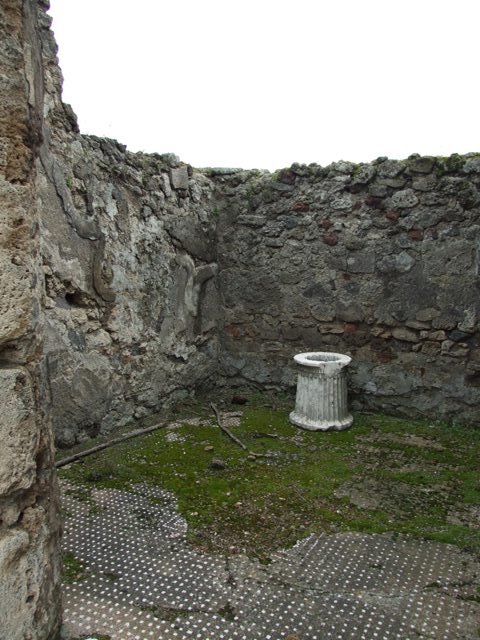 VII.9.47 Pompeii. December 2005. North-east corner of room 1, the atrium. Doorways to shop, on left, and room 2, on right.