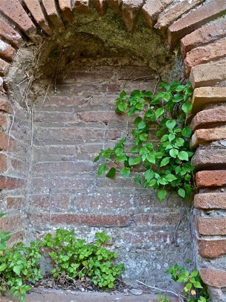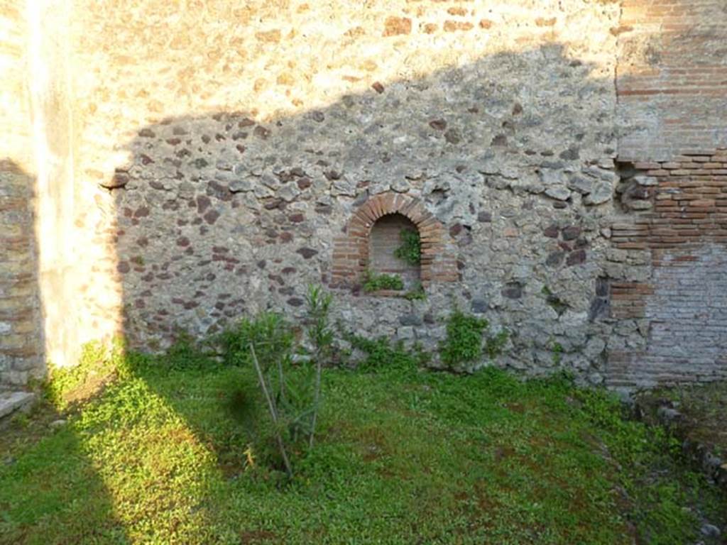 VI.2.16 Pompeii. May 2011. Detail of niche in south wall of peristyle.
