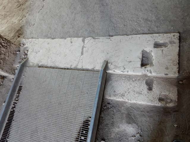 I.15.3 Pompeii. May 2015. Room 5, marble doorway threshold/sill in entrance vestibule. Photo courtesy of Buzz Ferebee.