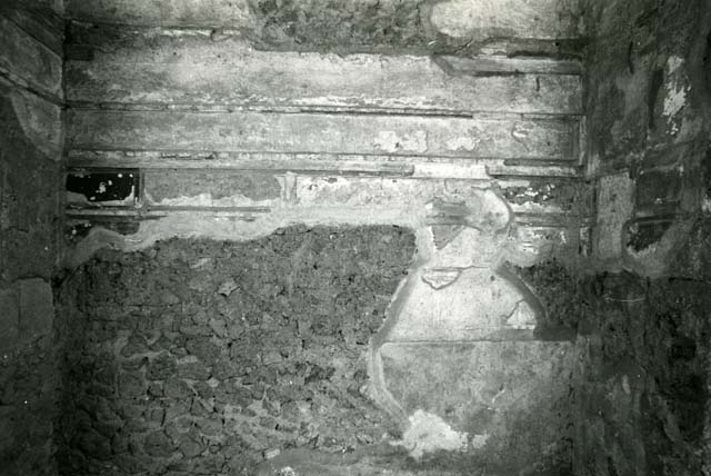 I.15.3 Pompeii. 1972. Room 5. House of Ship Europa, Fauces, right W wall. Photo courtesy of Anne Laidlaw.