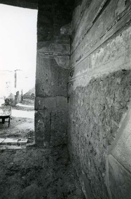I.15.3 Pompeii. 1975. Room 5. House of Ship Europa, north end of east (left) wall of entrance fauces.