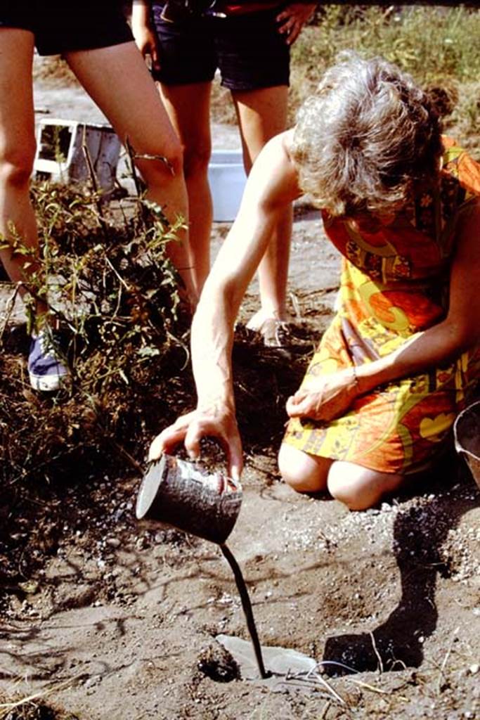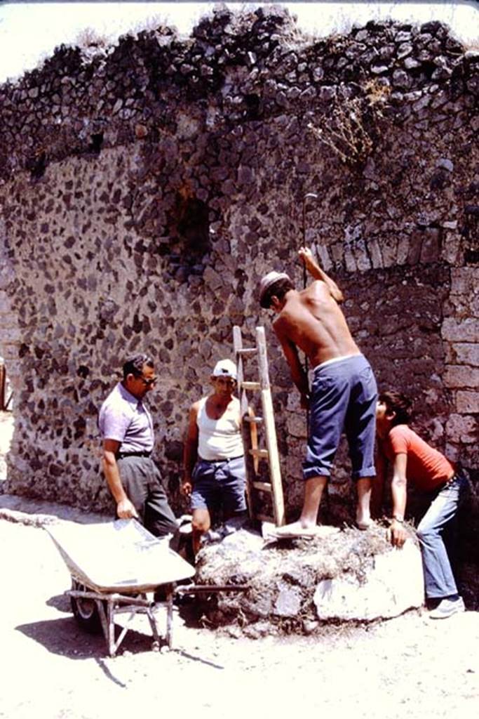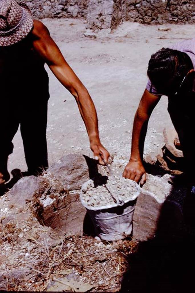 I.20.5 Pompeii. 1971. Pouring the cement into the root cavity. Photo by Stanley A. Jashemski.
