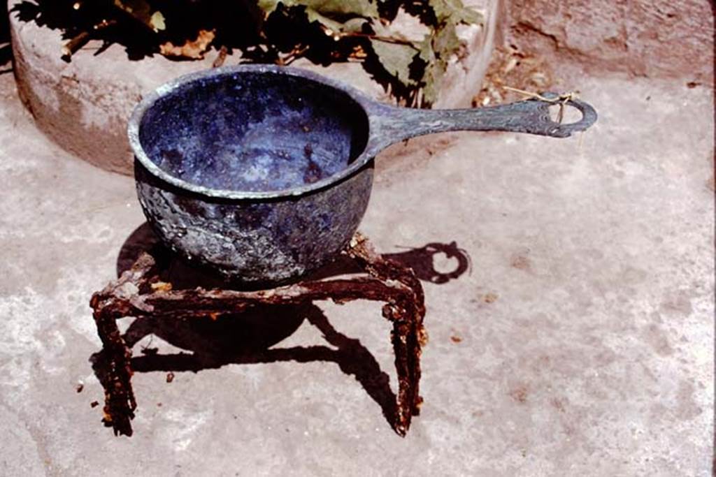 Pompeii. 1973. Iron tripod used for cooking. Photo by Stanley A. Jashemski.