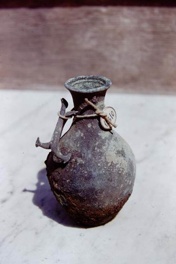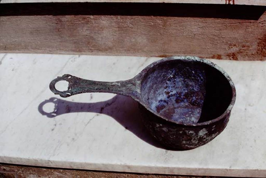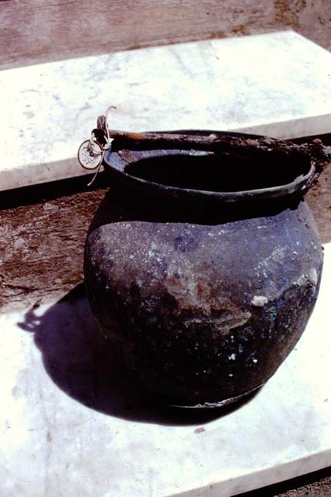 Pompeii. 1973. Bronze funnel found by the original excavators. Photo by Stanley
