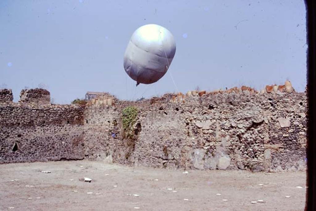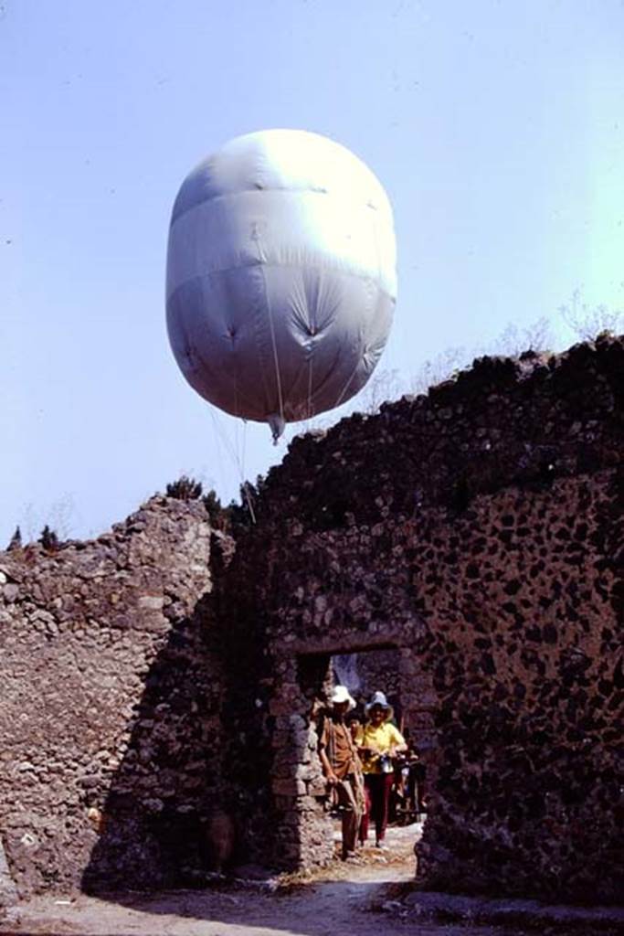 I.20.5 Pompeii. 1974. Looking towards north-west corner, and the “balloon” in Via della Palestra. Photo by Stanley A. Jashemski.
