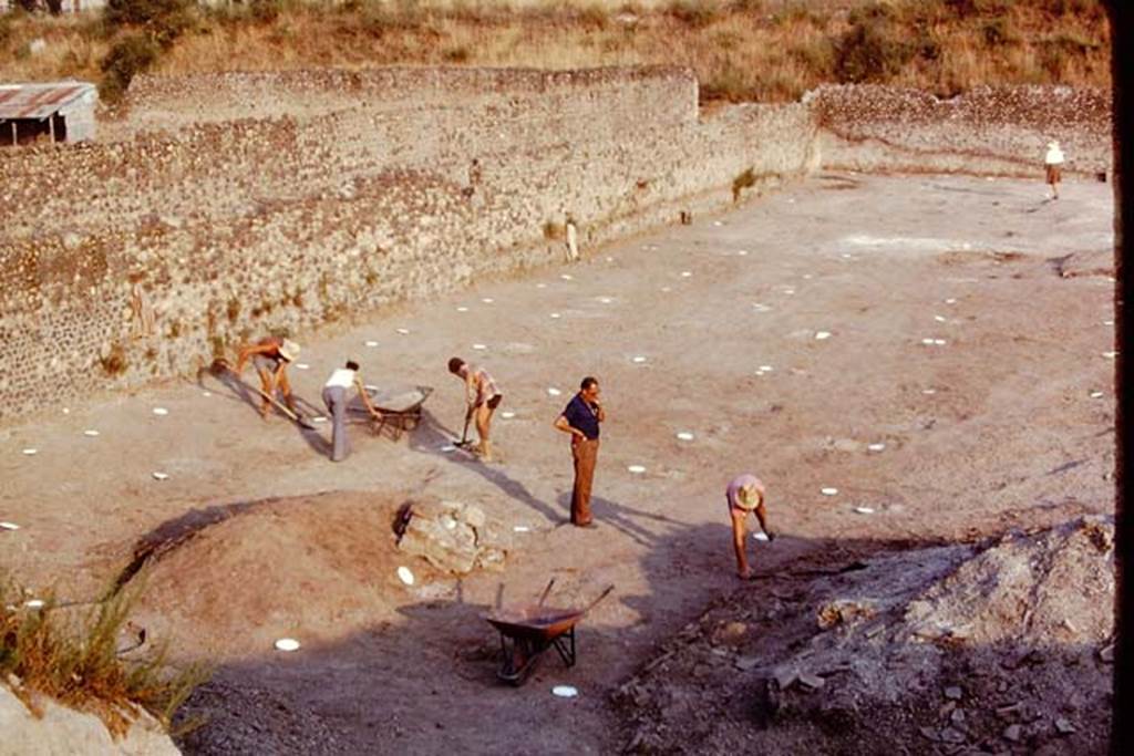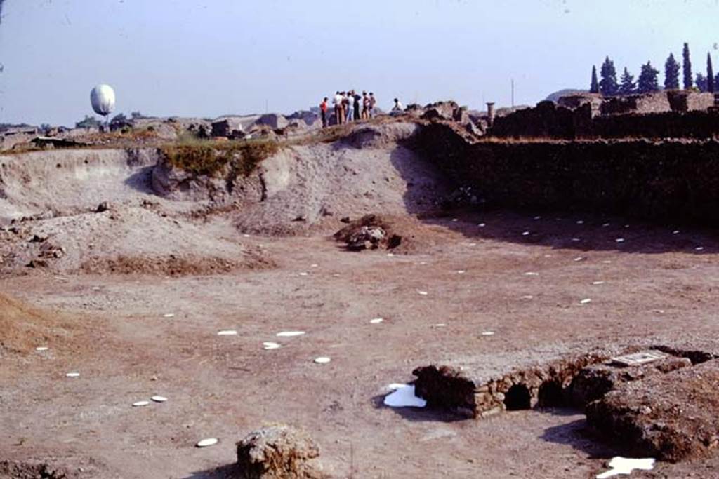 Looking south-west towards ramp, and site of painted spheres with the “balloon” crew. Photo by Stanley A. Jashemski.