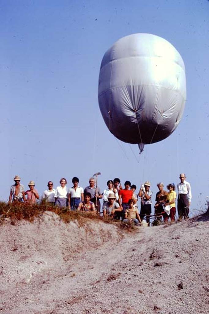 Getting ready to photograph from the “balloon”. Photo by Stanley A. Jashemski.