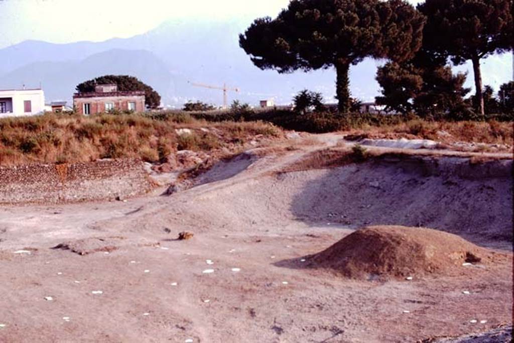 Looking north-west towards ramp being used by very heavy lorries to transport away the lapilli. Photo by Stanley A. Jashemski.