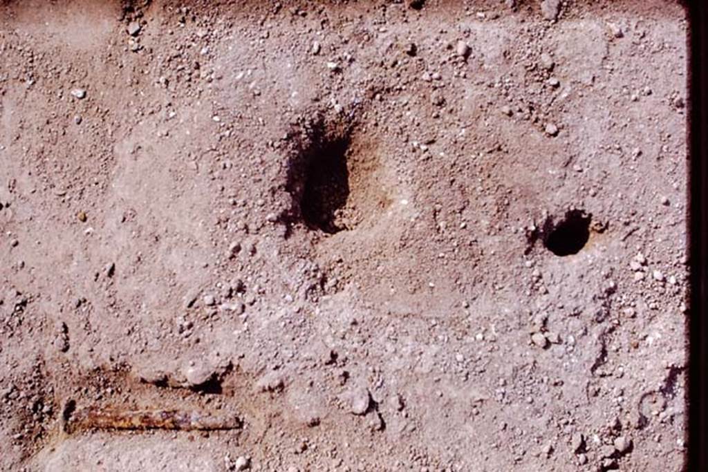 II.5 Pompeii. 1970. Root cavity with its stake hole, and a large nail found in the soil. Photo by Stanley A. Jashemski.