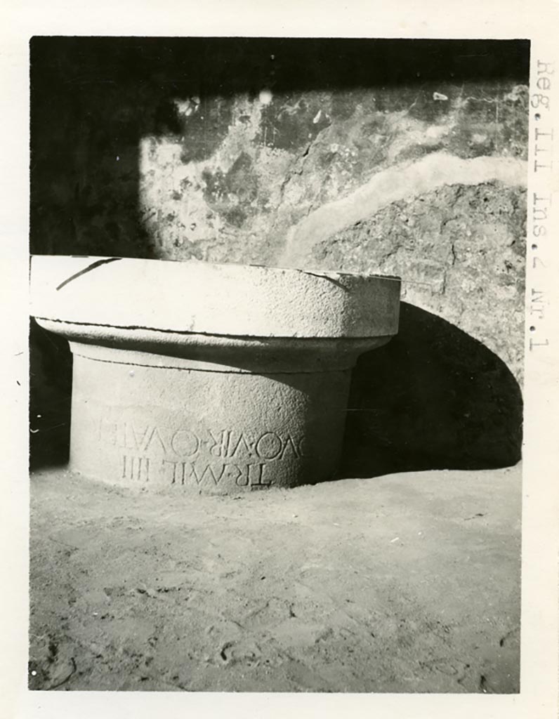 III.2.1 Pompeii. Pre-1937-39. East portico, upside down base of column.