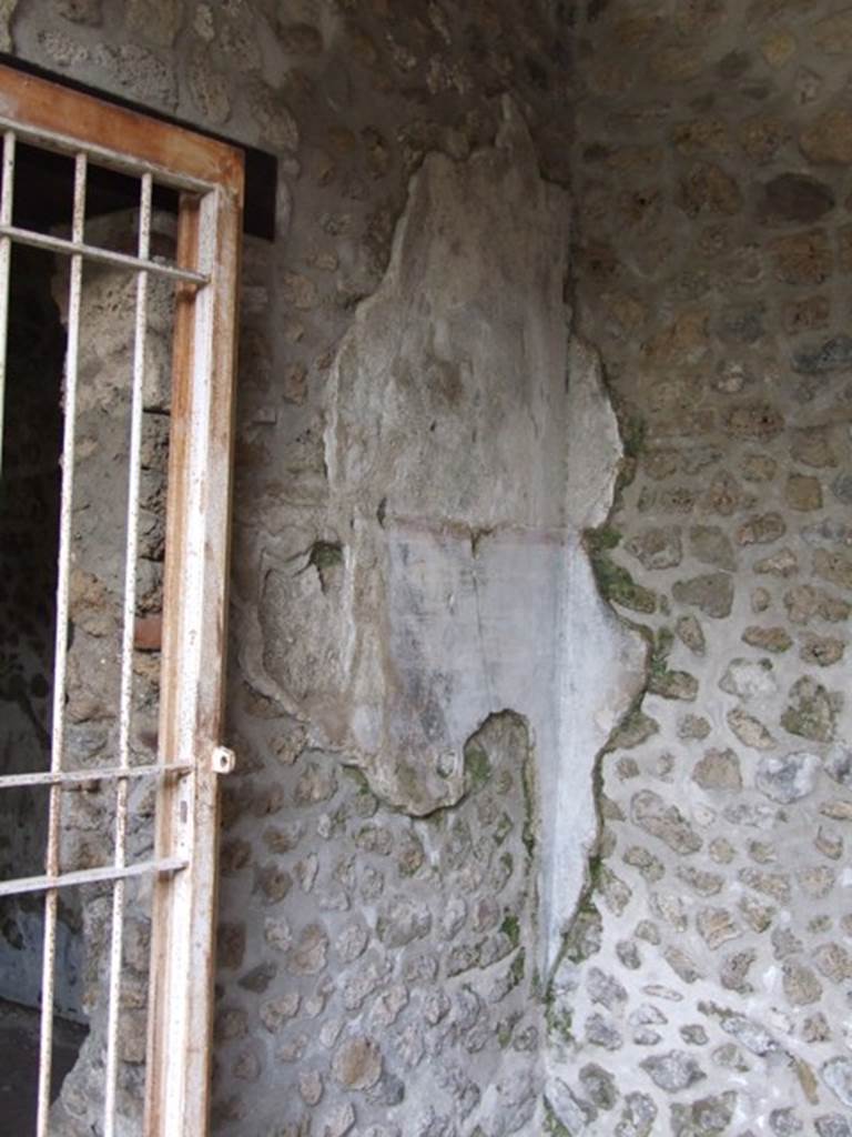 III.2.1 Pompeii. March 2009. Remains of plaster on west wall of small corridor, between room 17 and room 18.