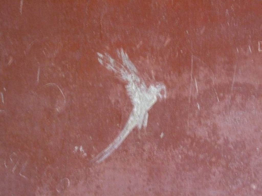 (The exedra in question, with a rectangular plan and a signinum floor, has a noble decoration of the III Style on the walls (fig.3), it has a decoration consisting of a black plinth divided into panels by simple stripes; in a frieze with a white background with rare architectural perspectives animated by garlands, hanging masks, eagles and griffins with outstretched wings; and in a sober and elegant middle area. This consists, for each wall, of 3 large panels (green in the middle (note our pictures – yellow? in the middle), red in the side panels) surrounded by black bands adorned with yellow friezes, and separated from each other by slender white columns with metallic friezes. In the centre of the middle panels are groups of objects and competitive vases; in the centre of the side panels, pheasants and flying swans.