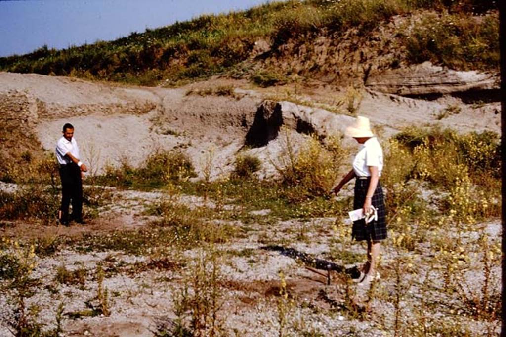 III.7 Pompeii. 1964. Wilhelmina and Sig. Sicignano planning their work. Photo by Stanley A. Jashemski.