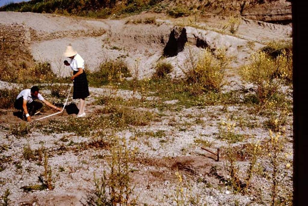 Wilhelmina and Sig. Sicignano measuring for their work. Photo by Stanley A. Jashemski.