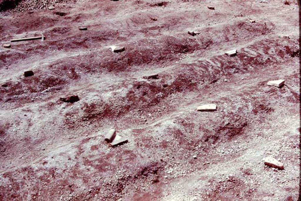 III.7 Pompeii. 1976. Furrows with root cavities protected by stones. Photo by Stanley A. Jashemski.