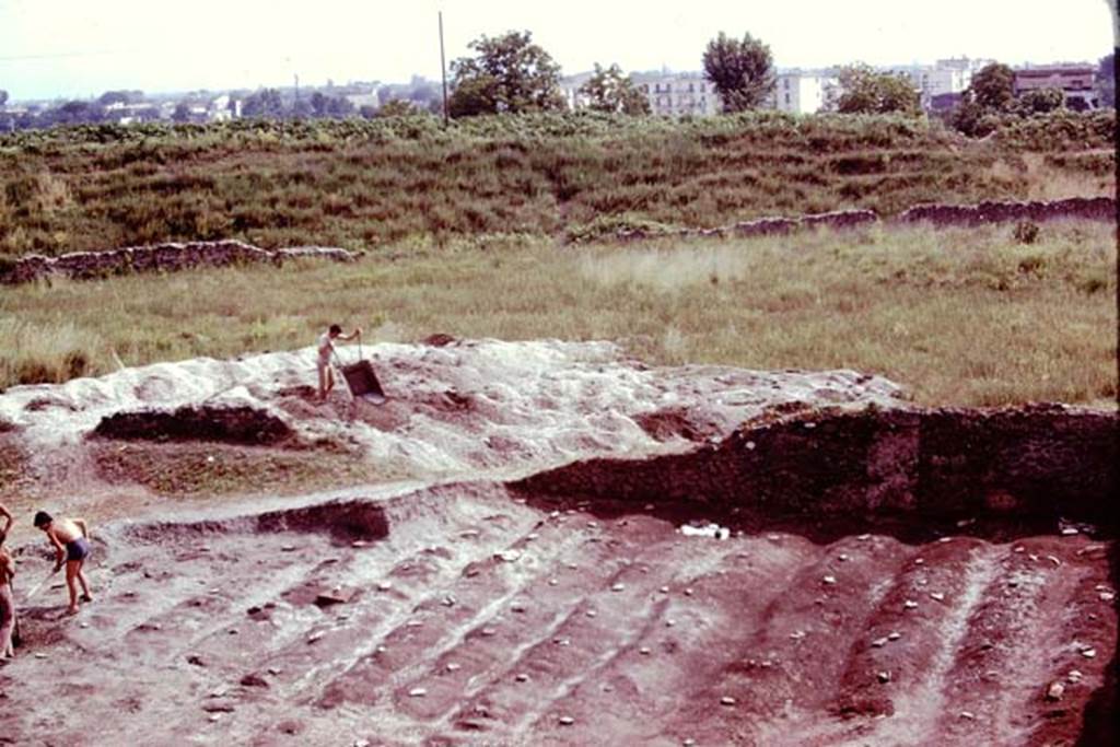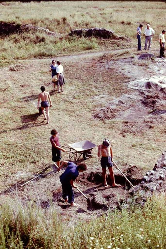 III.7 Pompeii. 1976. Excavating near the south wall. Photo by Stanley A. Jashemski.