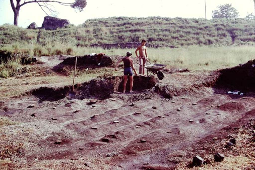 III.7 Pompeii. 1976. Original soil level reached through the lapilli. Photo by Stanley A. Jashemski.
