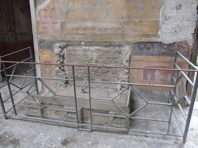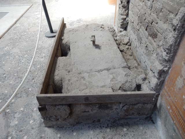 VI.15.1 Pompeii. May 2017. North side of atrium, position of strong box. Photo courtesy of Buzz Ferebee.