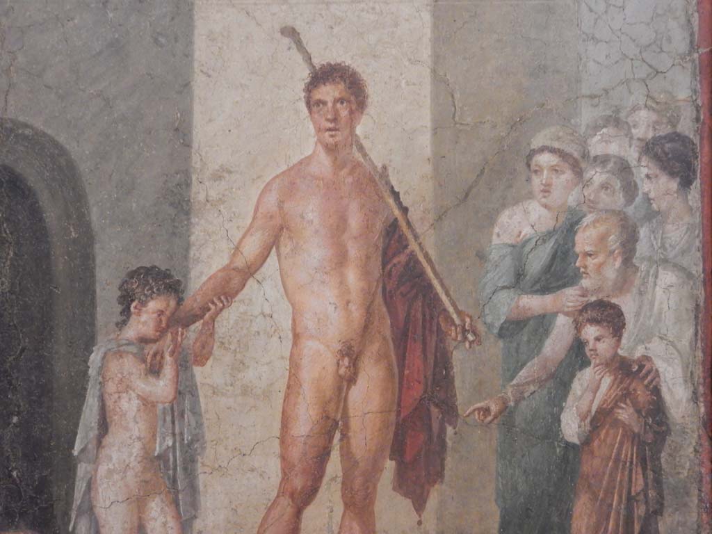 Room 17, detail from painting of Theseus from east wall of exedra. Photo courtesy of Buzz Ferebee.