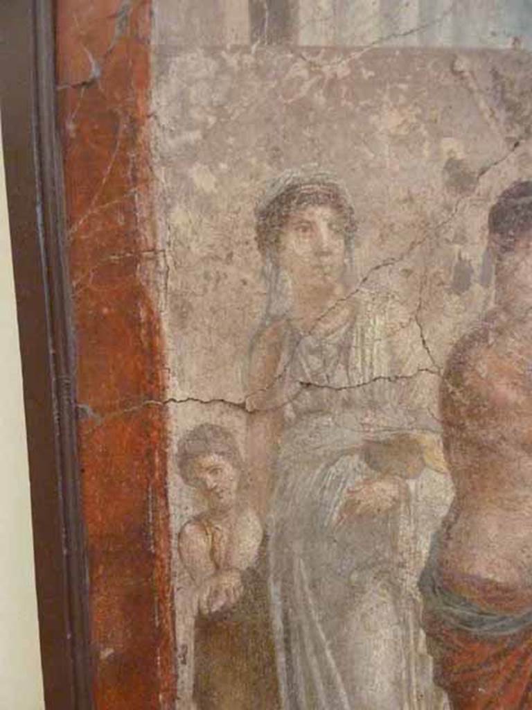 Room 17, detail from painting on west wall of exedra. The bride Hippodamia and a hand maid.