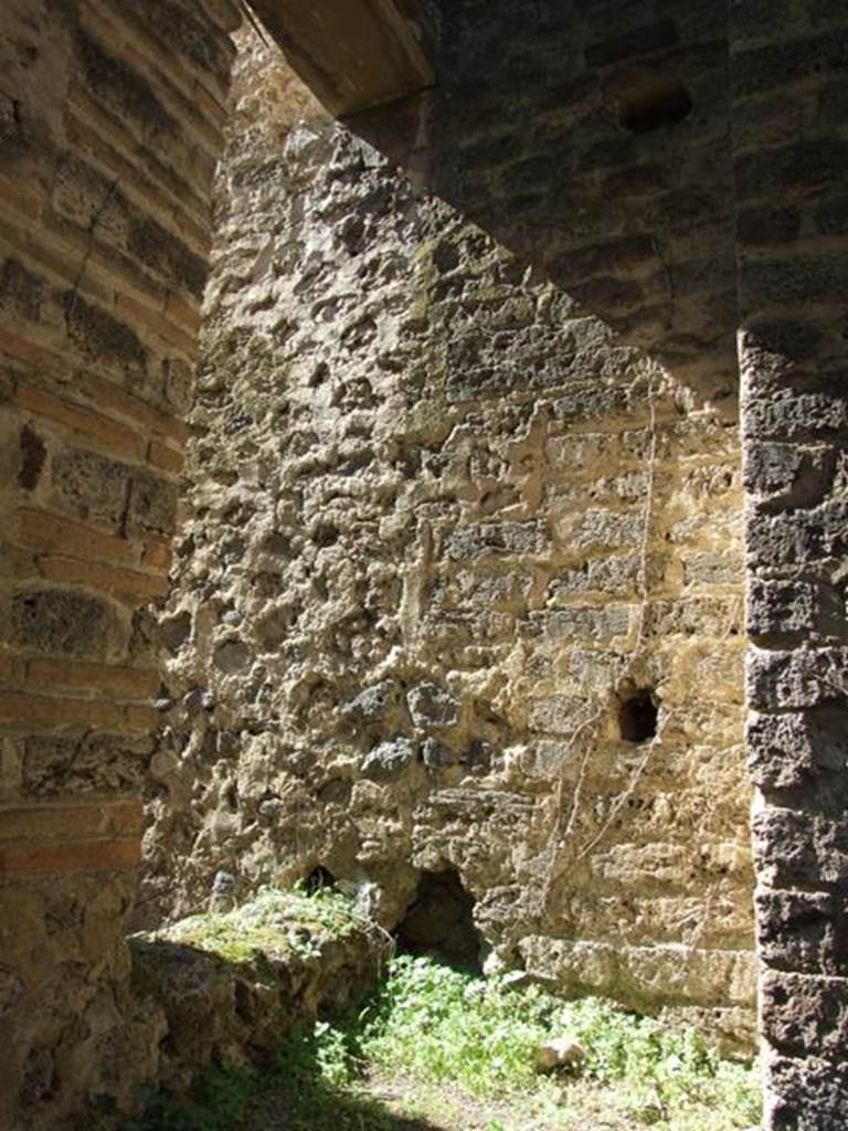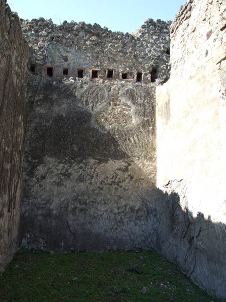 VII.2.18 Pompeii. March 2009. Room 7, west wall of cubiculum, with possible line of staircase.