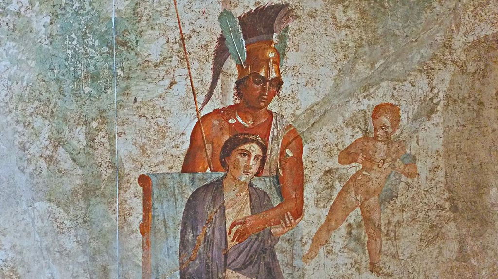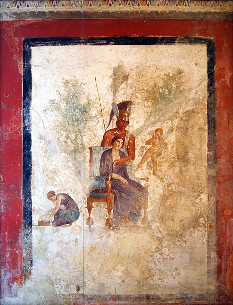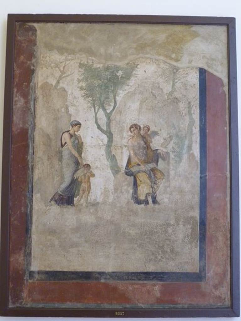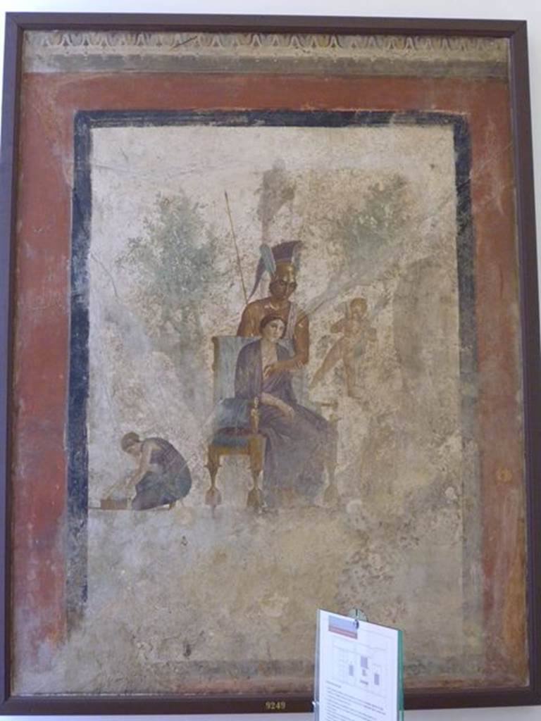 Found on the south wall of the tablinum on 5th August 1844. Wall painting of Mars and Venus.
