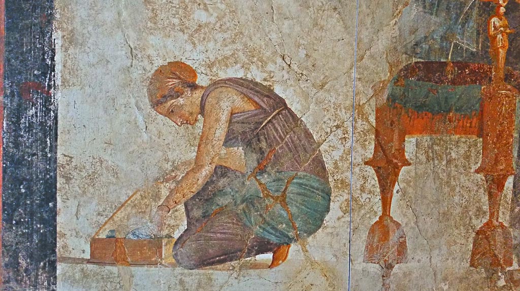 Found on the south wall of the tablinum on 5th August 1844. Detail from the wall painting of Mars and Venus.