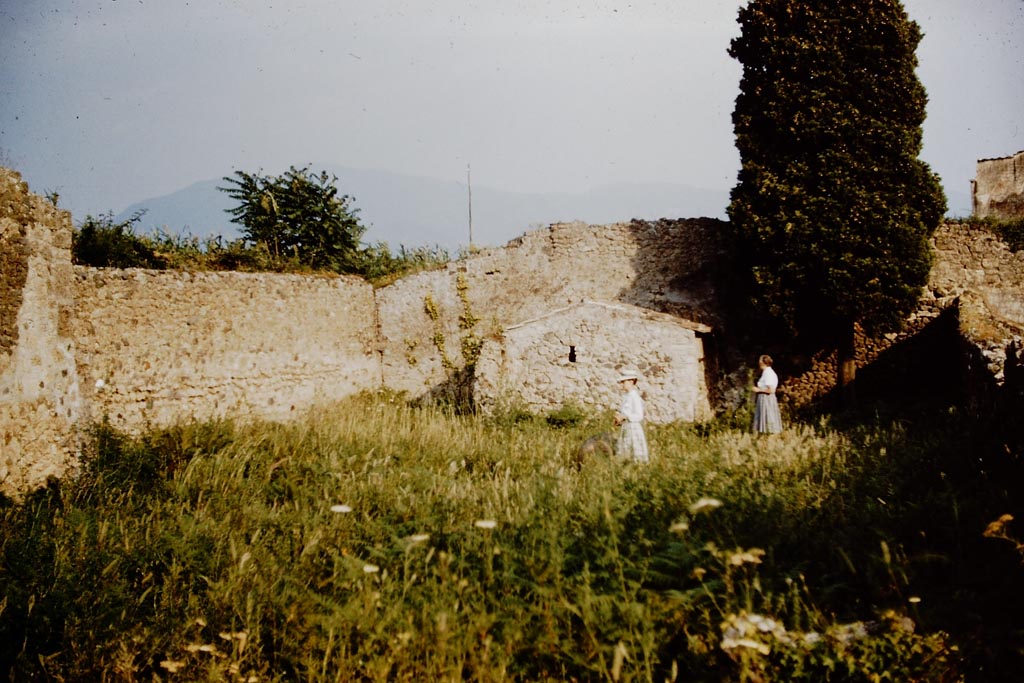 IX.9.6 Pompeii. 1961. Looking south across garden to the domestic sacrarium. Photo by Stanley A. Jashemski.