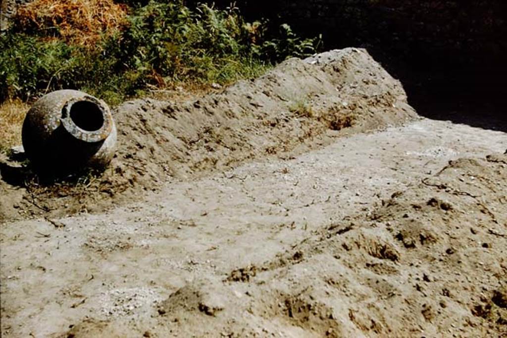 IX.9.6/10 Pompeii. 1961. Looking west along trench. Photo by Stanley A. Jashemski.