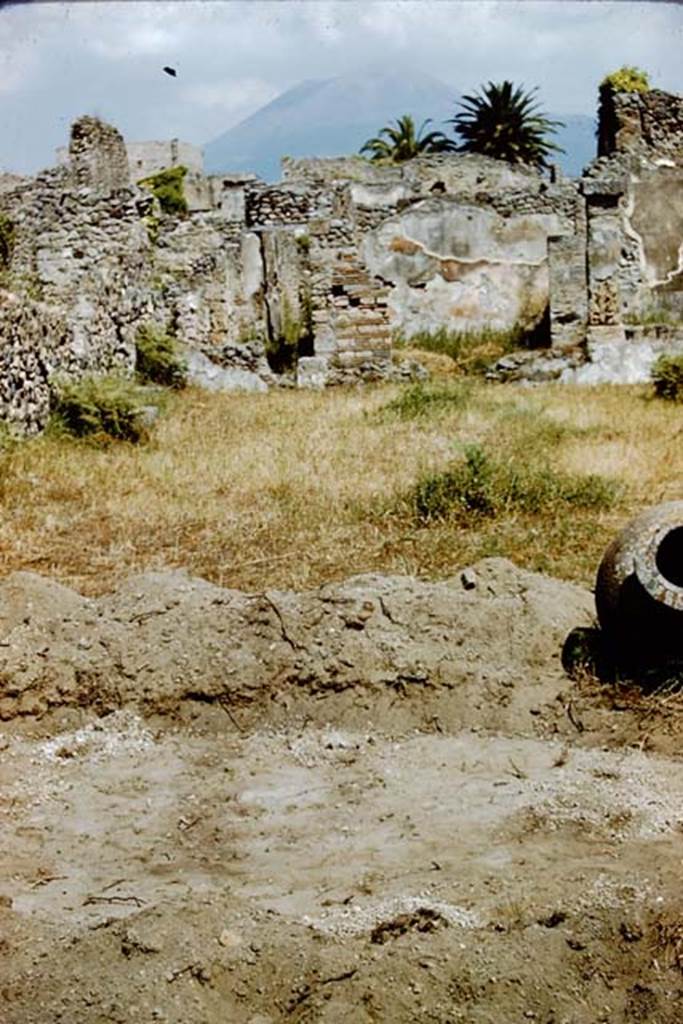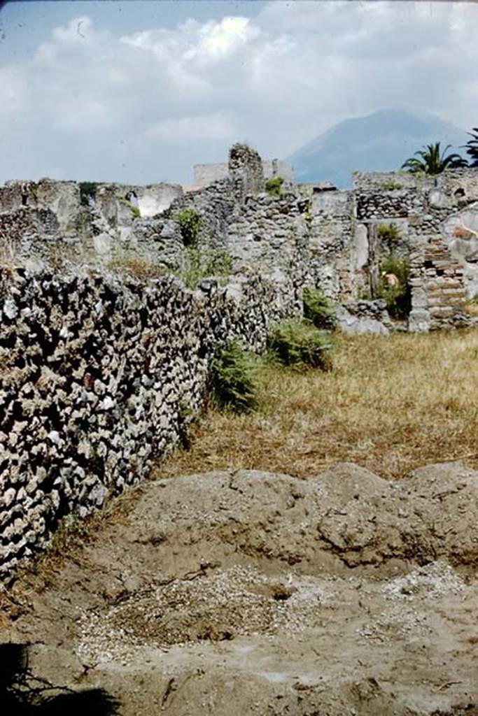 IX.9.6/10 Pompeii. 1961. Looking south to site of first trench widened to about five feet wide, (approx. 1.52m), east to west across garden area.