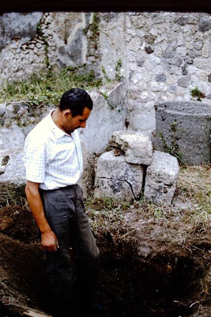 IX.9.6/10 Pompeii. 1964. Two root cavities being emptied and cleaned. Photo by Stanley A. Jashemski.