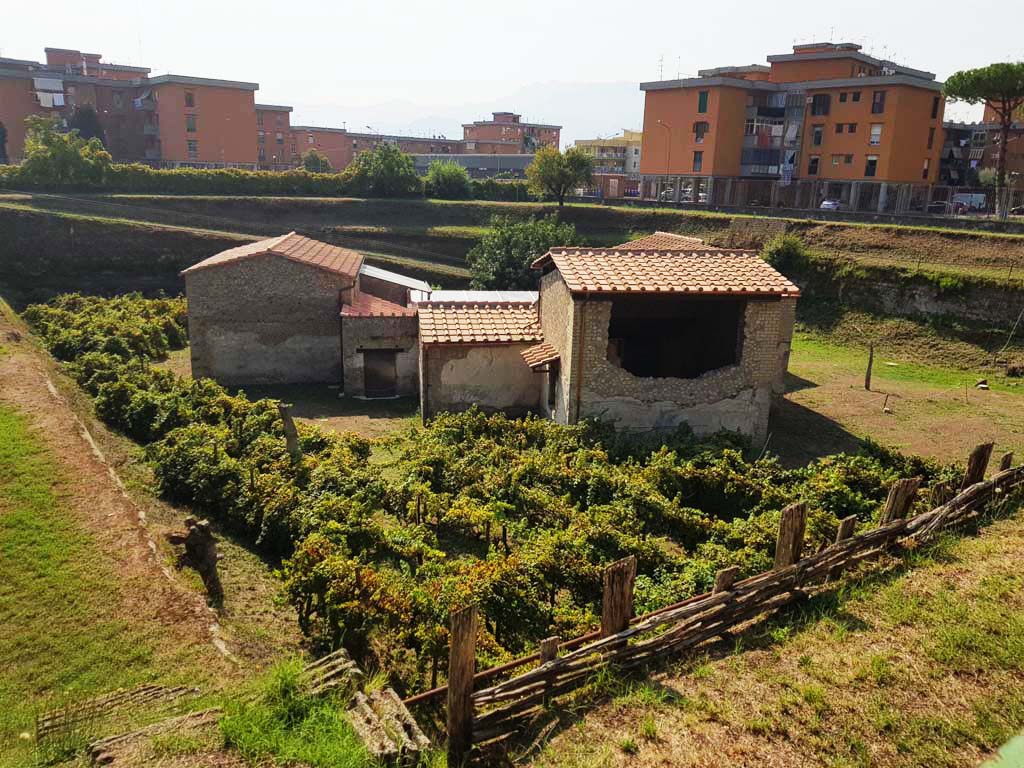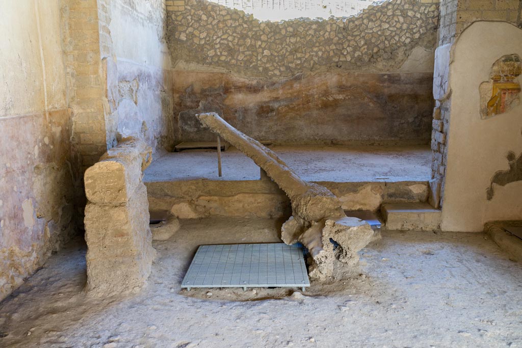 Room IX, looking south-west towards plaster cast of remains of wine press, or torcularium. Photo courtesy of Johannes Eber.