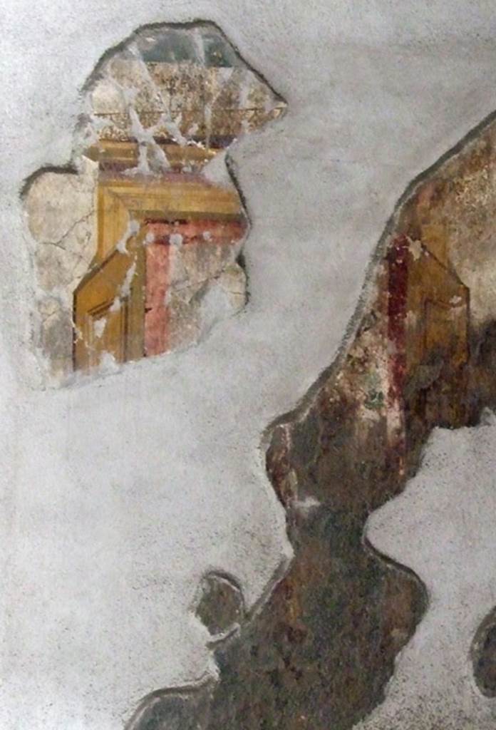 Room IX, calcatorium, north-west corner. Detail of painting of left-hand open door.