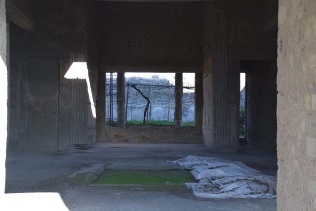 VI.2.4 Pompeii. May 2010. Looking west from rear of atrium across impluvium towards entrance, centre.
