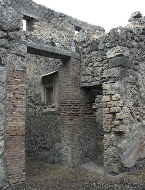V.1.28 Pompeii. December 2006. North wall of fauces and niche.