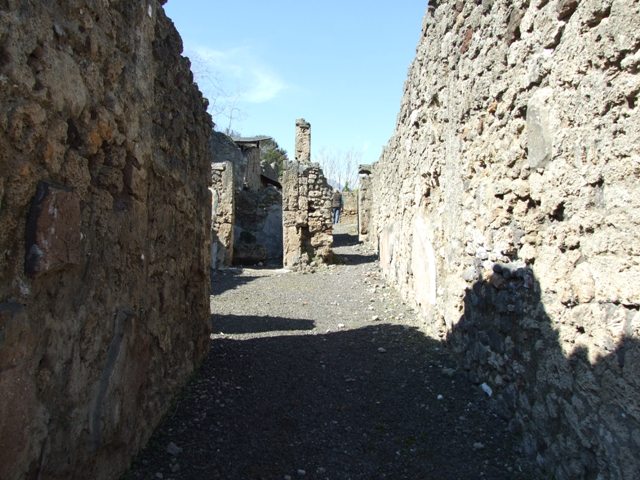 V.3.7 Pompeii.  March 2009.  Andron or passageway to Garden and Services area.  Looking north.