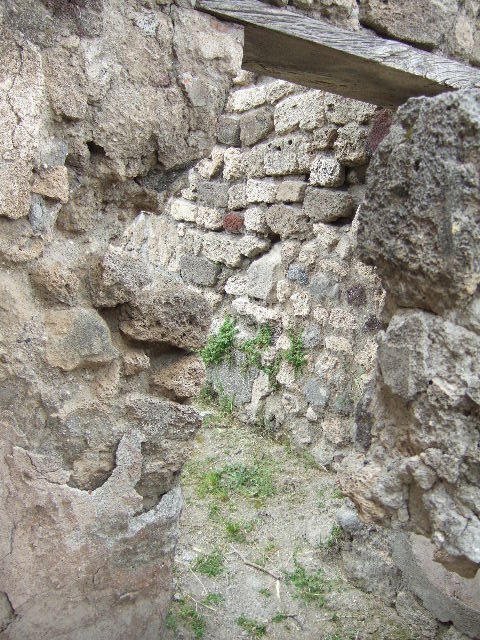Pompeii. May 2006. Doorway to latrine in north-west corner of shop.