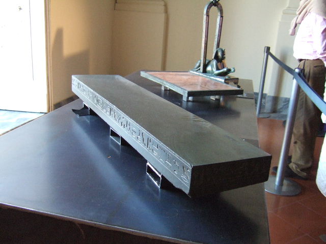 Basalt slab with a dedication from the Sacred banquet of Psammetico II, sovereign of twenty sixth dynasty of Egypt.