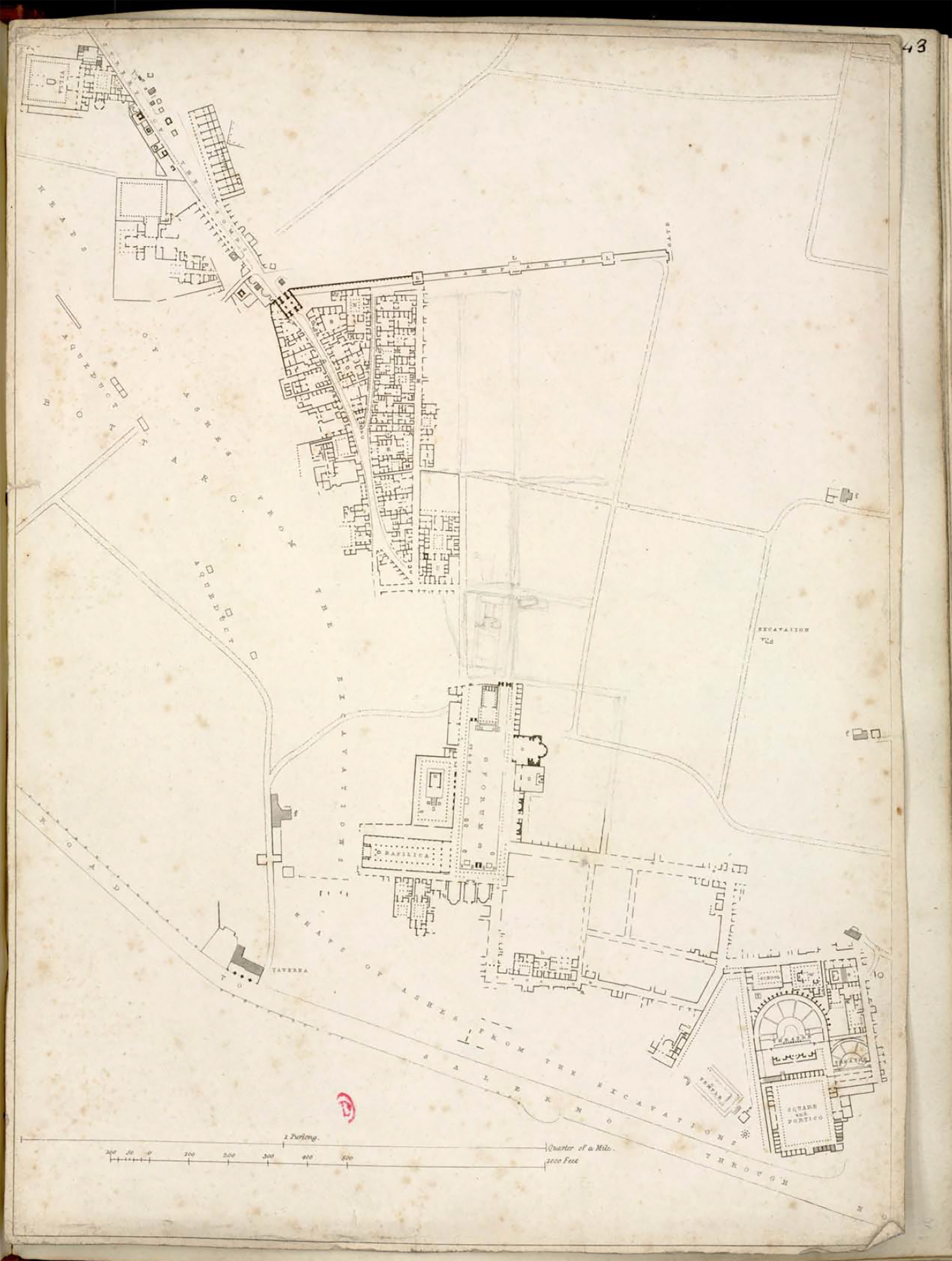 Left part of plan from Gell, W. Pompeii unpublished [Dessins de l'édition de 1832 donnant le résultat des fouilles post 1819 (?)] vol II, pl. 43 verso. Bibliothèque de l'Institut National d'Histoire de l'Art.