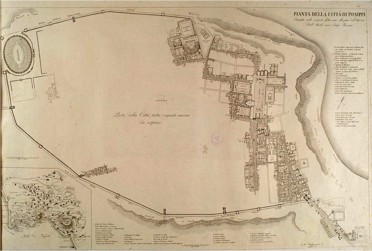 Plan of Pompeii in 1832 by Baldwin and Cradock for the Society for the Diffusion of Useful Knowledge. From Wikimedia.