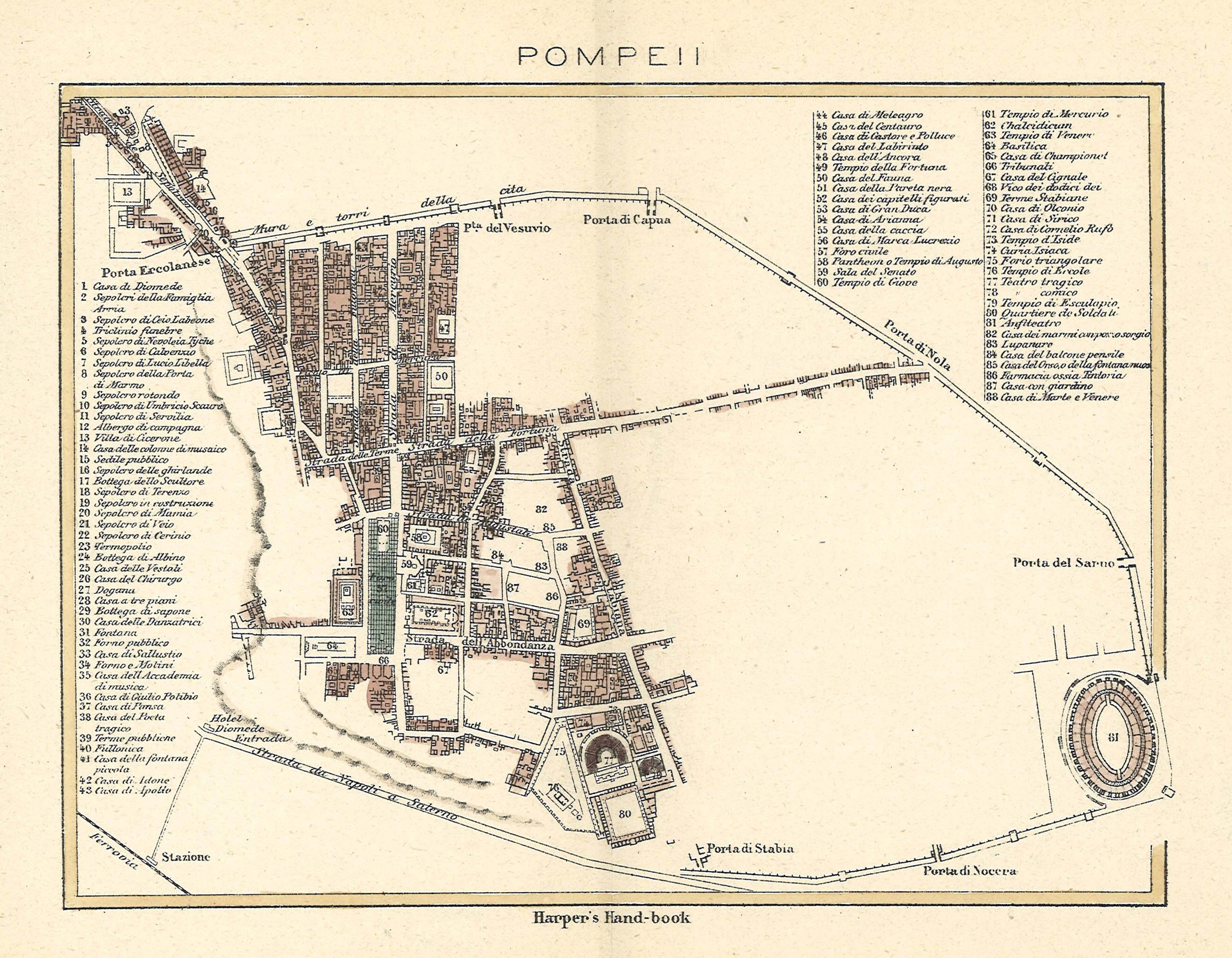 Plan of Pompeii in 1896 published in Brockhaus and Efron Encyclopedic Dictionary. Photo Wikimedia.