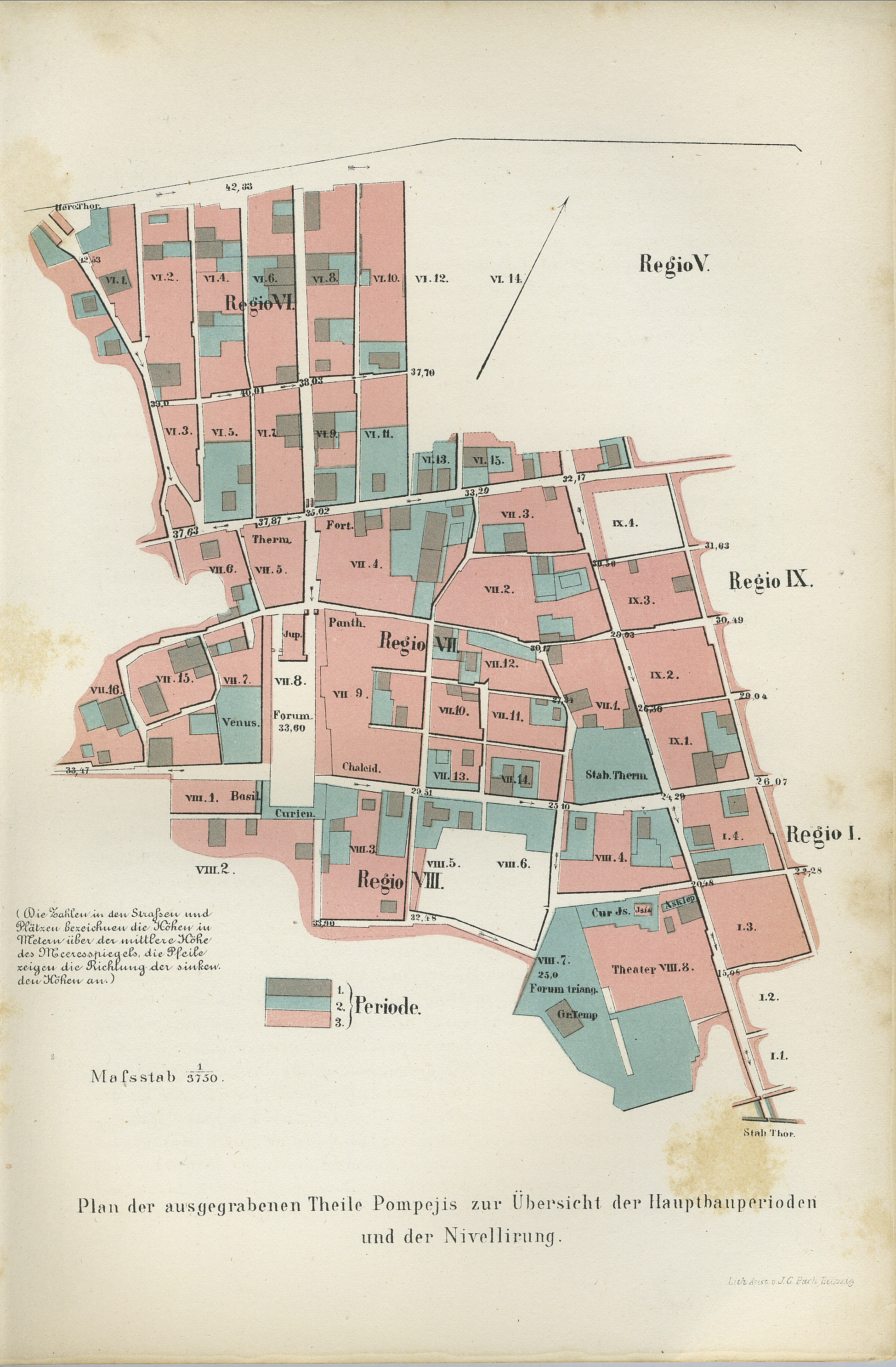 Plan der ausgegrabenen Theile Pompejis zur Übersicht der Hauptbauperioden und der Nivellirung 1875.