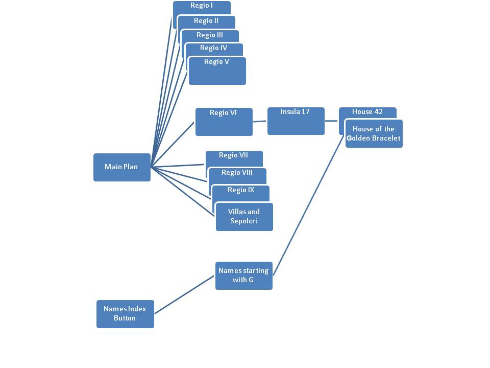 The Pompeii button will give you a link to each regio and all the pages related to Pompeii