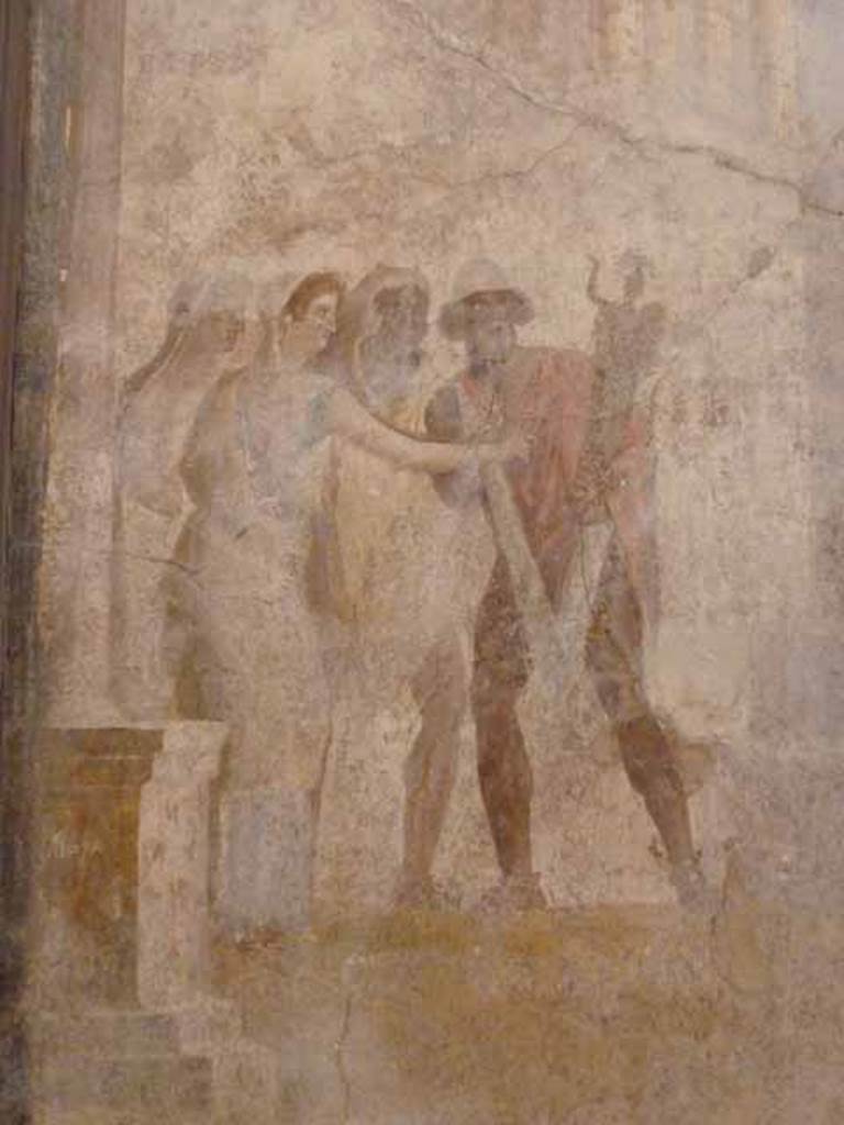 Detail from the wall painting of the Theft of the Palladium (Ratto del Palladio) found on the south wall of the triclinium.
